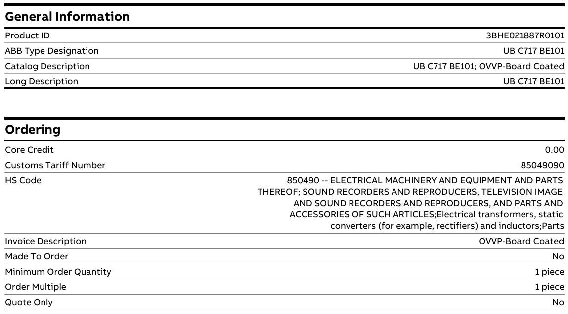 3BHE021887R0101 یک محصول با روکش OVVP-board است. توابع و ویژگی های اصلی از ویژگی های فیزیکی و سناریوهای کاربردی ناشی می شوند.