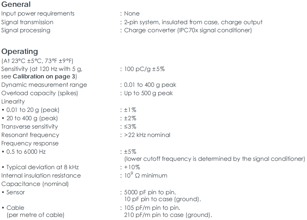 یک ساختار کریستالی پیزوالکتریک حالت برشی متقارن جدا شده از محفظه سنسور اتخاذ شده است. این طراحی حساسیت به کرنش پایه (خم شدن سطح نصب) و تغییرات گذرا دما را به حداقل می رساند، که می تواند باعث ایجاد سیگنال های نادرست در انواع دیگر شتاب سنج ها شود. عایق پوسته داخلی می تواند از حلقه های زمین (منبع رایج نویز الکتریکی در سیستم های اندازه گیری) جلوگیری کند، بنابراین سیگنال های واضح و قابل اعتماد را تضمین می کند.