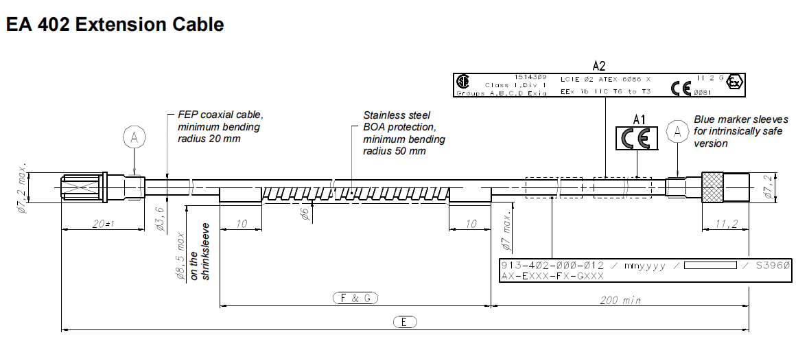 خود کابل Exi EA402 ایمنی را به عنوان یک پیوند کلیدی در مدار محدود کننده انرژی ایجاد نمی کند، بلکه جزء کل مدار ذاتا ایمن است. 913-402-000-013-A1-E050-F0-G000 باید در ارتباط با پیش تقویت کننده IQS 452 کار کند. پیش تقویت کننده مدارهای محدود کننده ولتاژ، محدود کننده جریان و ایزوله را در داخل یکپارچه می کند. این مدارها انرژی را از ناحیه ایمنی به سطح بسیار پایین محدود می کنند و سپس آن را از طریق کابل EA402 به پروب TQ واقع در منطقه خطر تحویل می دهند.