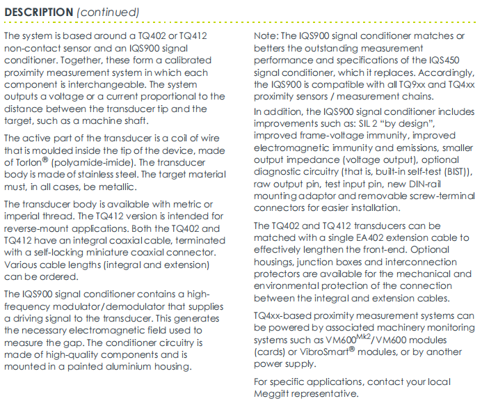 سنسورهای اولیه فقط بر عملکرد خود کاوشگر متمرکز بودند. امروزه ارزش TQ412 به کل زنجیره "درک - انتقال - پردازش" گسترش یافته است. ظهور گزینه هایی مانند F0، F1 و F2 نشان می دهد که سازندگان کابل ها را به عنوان بخشی جدایی ناپذیر از سیستم می دانند. این تفکر در سطح سیستم یکپارچگی سیگنال را از نوک کاوشگر تا انتهای ورودی در اتاق کنترل تضمین می کند و قابلیت تعویض "plug and play" را از طریق کالیبراسیون کارخانه تضمین می کند و حالت تعمیر و نگهداری در محل را کاملاً تغییر می دهد.
